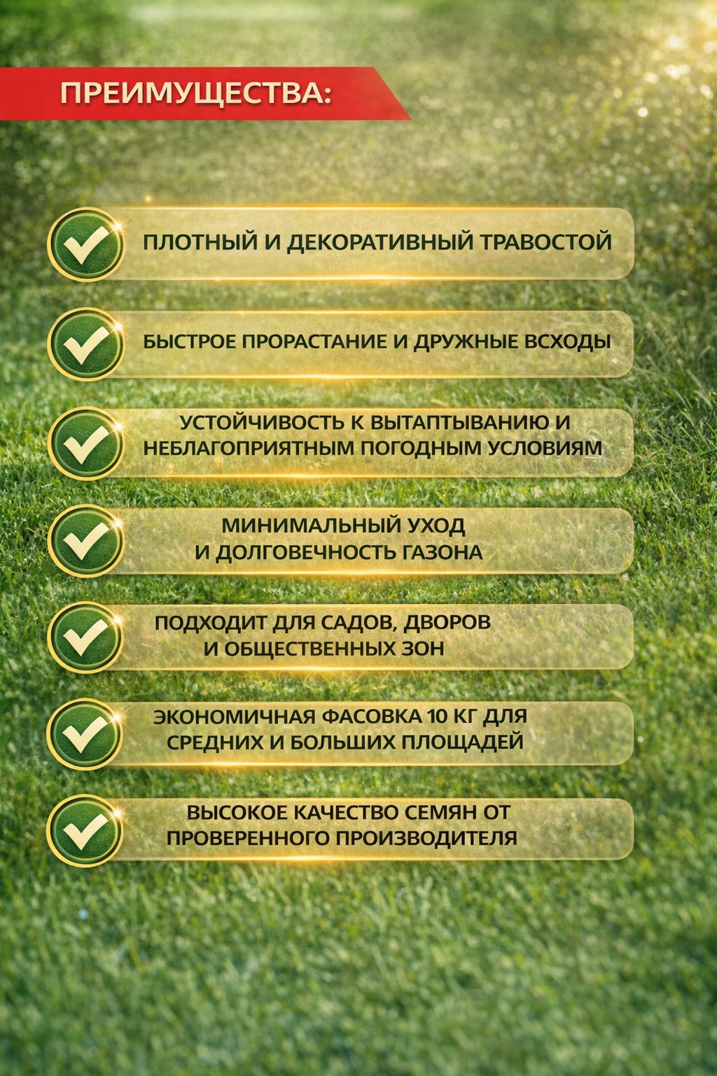 Устойчивость к вытаптыванию и неблагоприятным погодным условиям.