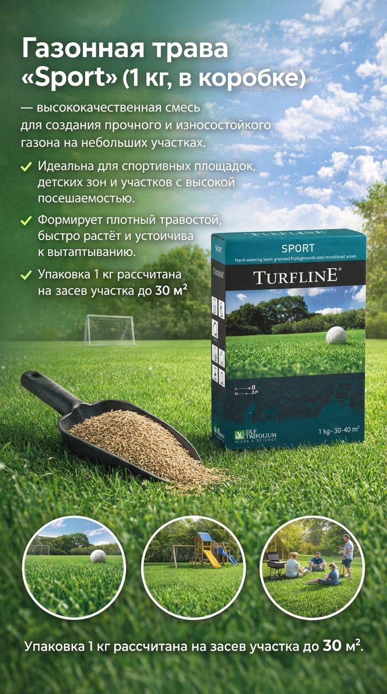Газонная травосмесь Sport — это профессиональная смесь семян газонных трав, предназначенная для создания плотного, устойчивого и износостойкого газона. Смесь специально разработана для участков с высокой нагрузкой и активным использованием.