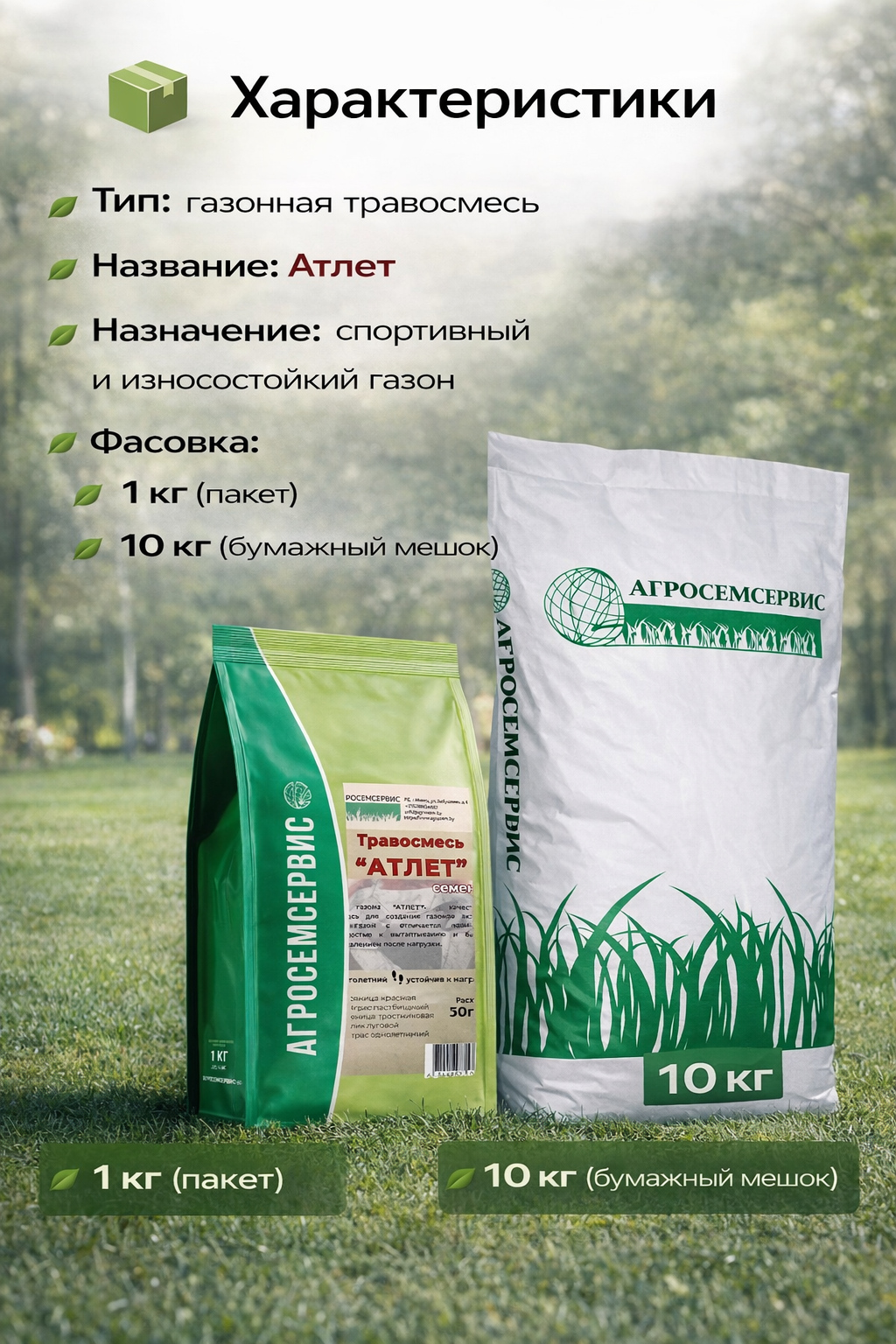 Газонная травосмесь «Атлет» — это специально подобранная смесь семян газонных трав, предназначенная для создания плотного, устойчивого и износостойкого газона. Смесь отлично подходит для участков с высокой нагрузкой и активным использованием.