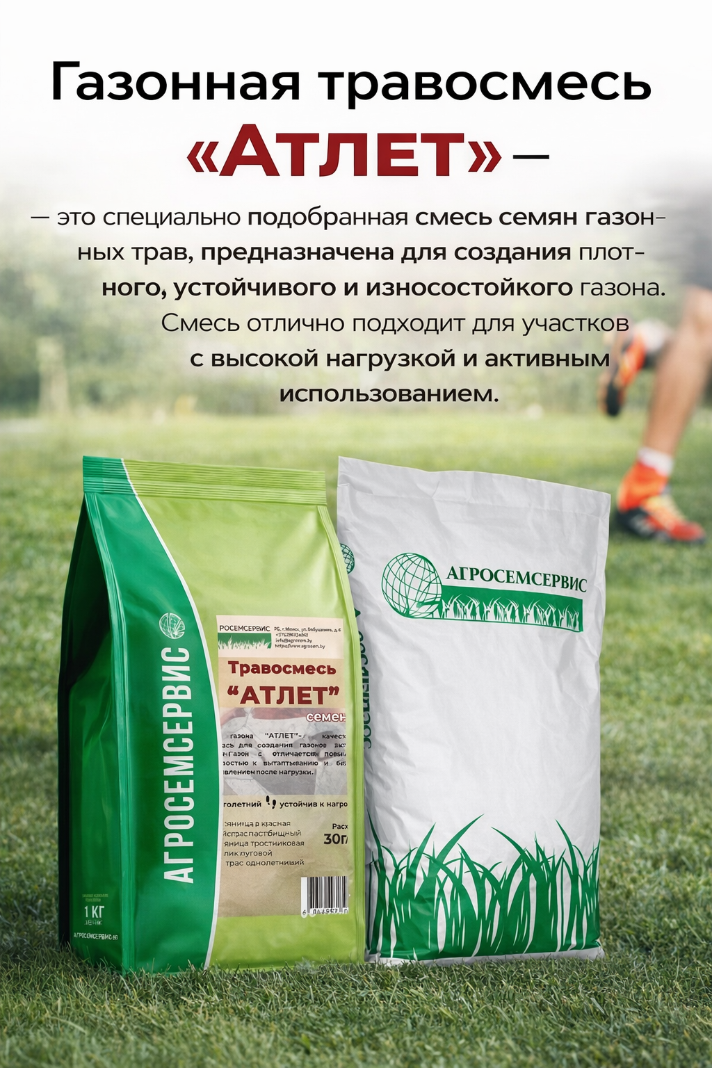 Газон «Атлет» идеально подходит для спортивных площадок, игровых зон, дворов, парков и территорий с высокой проходимостью.