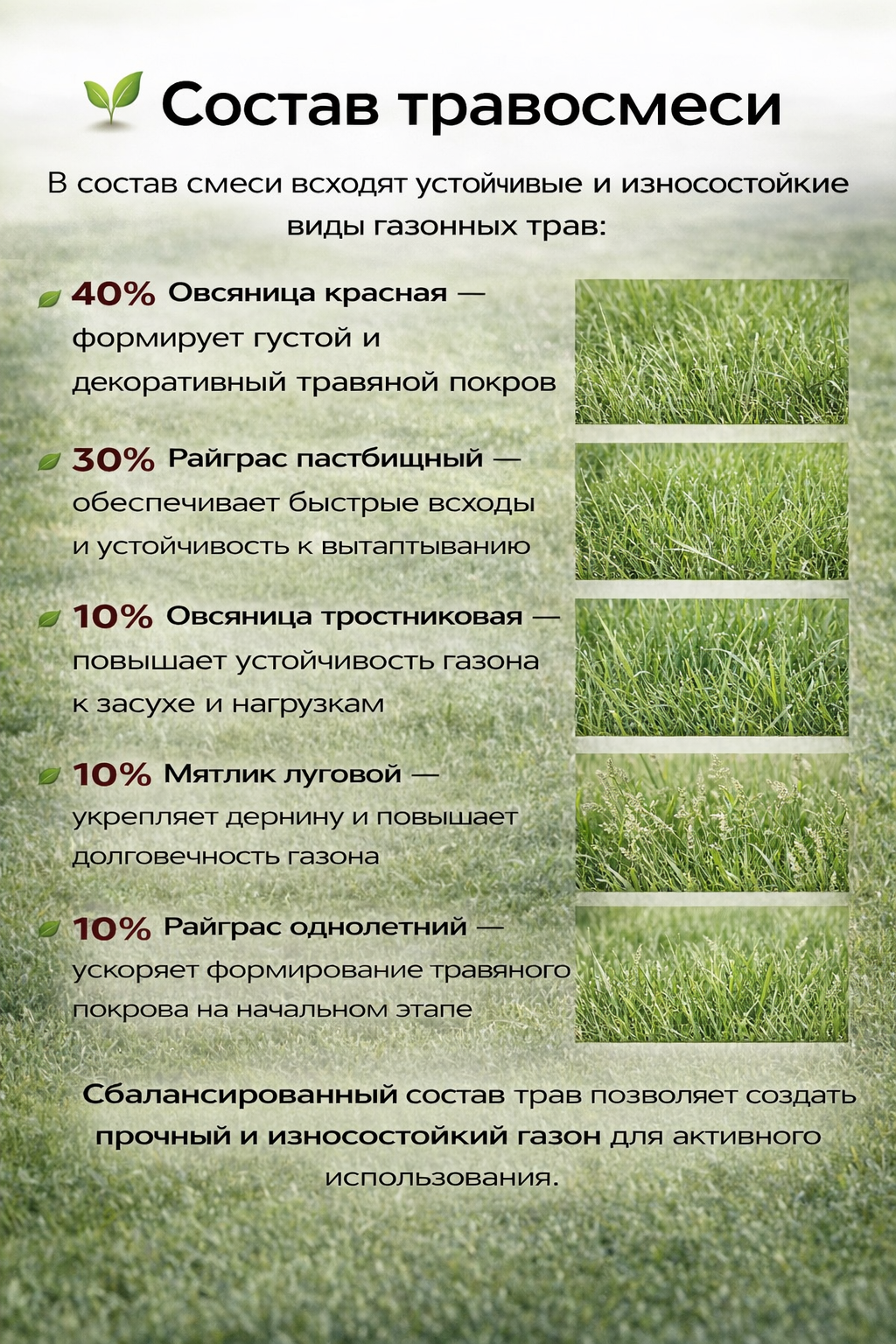 ✔ научно обоснованные травосмеси