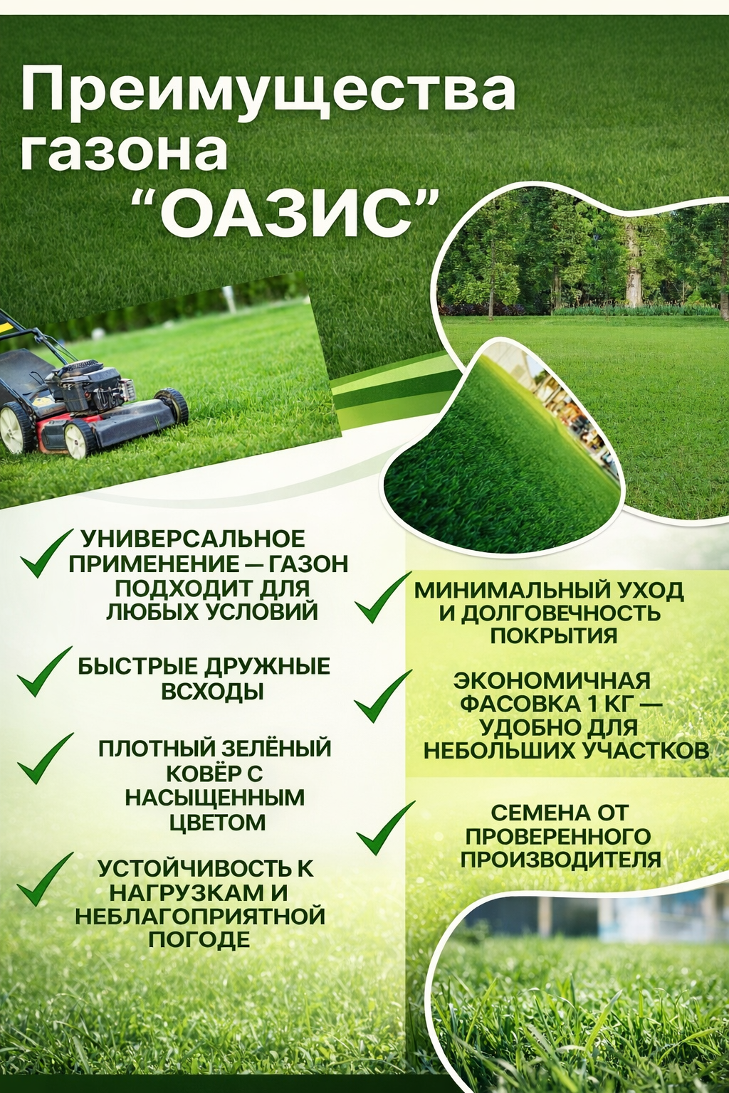 Газонная трава «Оазис Универсальный» (1 кг) — идеальное решение для создания красивого и прочного газона на даче, возле дома или в общественных зонах. Смесь семян отличается неприхотливостью, быстро укореняется и образует плотный изумрудный ковёр, устойчивый к вытаптыванию. Подходит для декоративного, спортивного и функционального газона. Упаковка 1 кг рассчитана на засев участка площадью до 30 м².