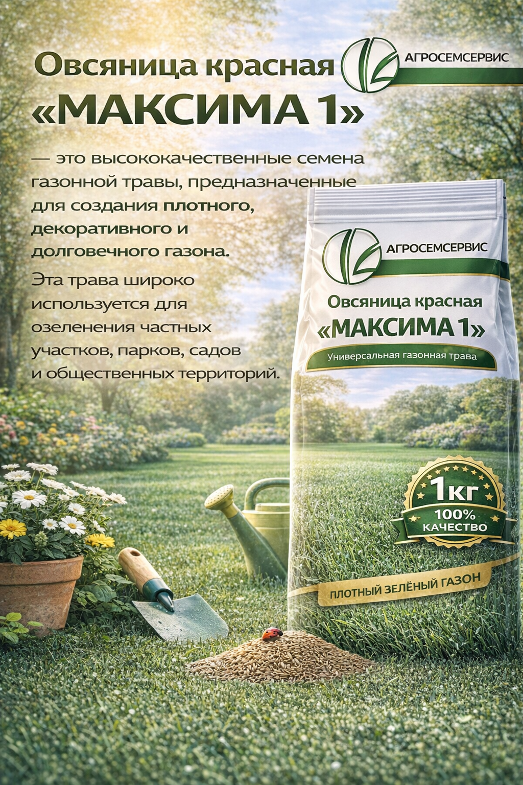 100% Овсяница красная «Максима 1» (Festuca rubra) — многолетняя газонная трава, формирующая плотную дернину и декоративный травяной покров.