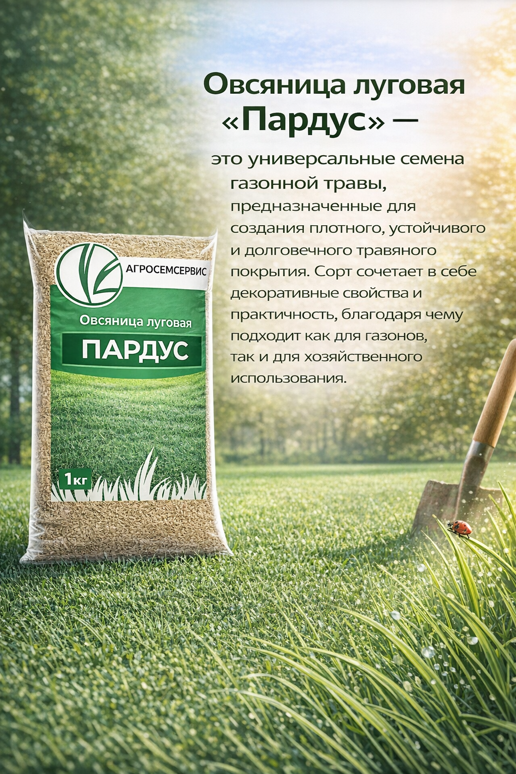 Овсяница луговая «Пардус» — это универсальные семена газонной травы, предназначенные для создания плотного, устойчивого и долговечного травяного покрытия. Сорт сочетает в себе декоративные свойства и практичность, благодаря чему подходит как для газонов, так и для хозяйственного использования.