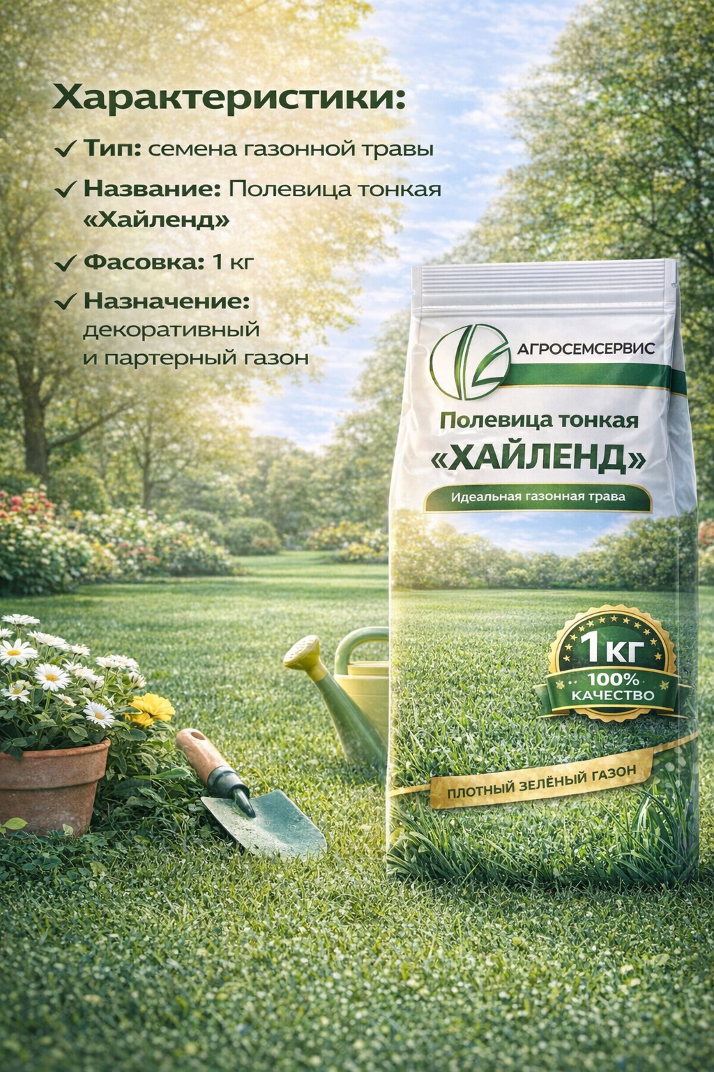 100% Полевица тонкая «Хайленд» (Agrostis capillaris) — многолетняя газонная трава, формирующая плотный и мягкий травяной покров.